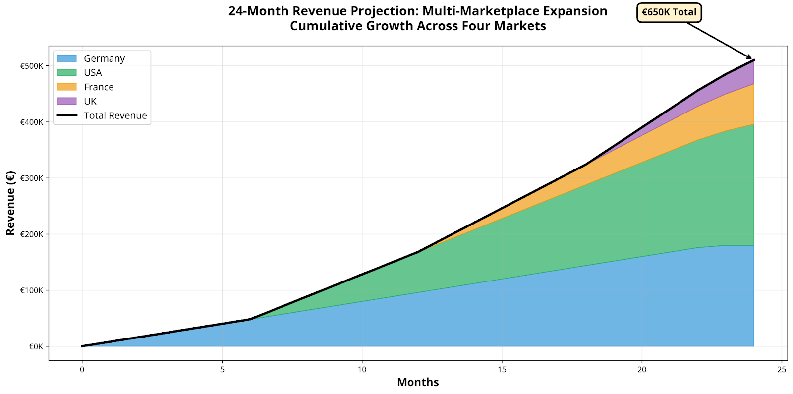 Across all four marketplaces, the 24-month projection came to €650,000.